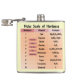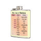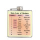 This educational geology hip flask features the Mohs Scale of Mineral Hardness. For a quick reference, this chart features the ten minerals of the Mohs scale, listing their hardness number (1-10), mineral name (talc, gypsum, calcite, fluorite, apatite, orthoclase, quartz, topaz, corundum, and diamond), and their respective chemical formulas. It also includes the positioning of several handy reference items (fingernail, penny, iron nail, glass, and streak plate). This is a handy item for a beginning mineralogist or rockhound.
