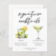 Cette feuille de menu cocktails signature été propose une simple typographie noire au-dessus de 2 de vos boissons préférées et de leurs ingrédients pour votre bar mariage côtier. Un dessin chic Mojito et Martini ajoute une touche ludique à votre menu de bar. Complétez avec les noms du couple et la date de leur réception.