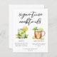 Cette feuille de menu de cocktails sophistiquée vous propose une simple typographie noire au-dessus de 2 de vos boissons préférées et de leurs ingrédients pour votre bar mariage côtier. Un dessin chic Mojito et Moscow Mule ajoute une touche ludique à votre menu bar. Complétez avec les noms du couple et la date de leur réception.