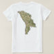 The front of this t-shirt boldly displays the Moldovan flag with its distinctive coat of arms over a yellow band with a blue band to the left and a red band to the right. This is matched at the back by an attractive map of Moldova.