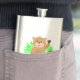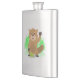The product is a good size and came exactly as it was pictured. The lid is not attached to the flask, which could be dangerous on drunken nights... The print came out surprisingly well and looks very sharp. Would definitely recommend.