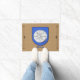 Spanish surname Molina Historical Shield Floormat displays a silver millstone on a blue field set on a fine burlap design style background.