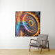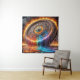 A massive, intricately detailed circular clock melts under intense flames, its hands and numbers liquefying into vibrant streams of molten crimson, neon violet, and glowing turquoise. The surreal rivers of molten colours pool at the base, resembling liquid gems in a fiery and smouldering landscape. The dark, atmospheric scene brings an intense and surreal twist to the concept of time, perfect for lovers of bold, abstract art with a fiery touch.