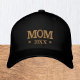 Embroidered Hats: Classic golden / white fashion baseball cap with text "MOM" and custom year 20XX for fresh moms, mothers day, grandma birthday / family hats