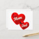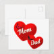 This postcard design features the massage "mom-dad" into hearts and show feelings for mom-dad love.