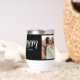 Sleek white and black thermal wine tumbler with elegant white Mom Est. script and your personalized photo. A stylish, heartfelt keepsake that keeps drinks hot or cold for busy moms on the go.