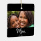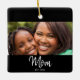 Mom Established black and white script photo ceramic ornament featuring your custom picture and year. A modern, minimal keepsake perfect for new moms or Mother’s Day. Personalized, elegant, and meaningful—ideal for celebrating her story on the Christmas tree year after year.
