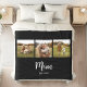 Mom Established Modern Script 3 Photo Black Fleece Blanket