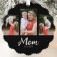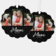 Mom Established Modern Script Black 3 Photo Ornament Card