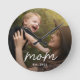 Mom Established Modern White Script Photo Round Clock