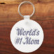 Key chain with World's #1 Mom in 3D blue-grey text. Round and square key chains available in several sizes.