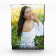 “Mom.” A fun, playful visual of white script handwriting and cute, playful hearts against the photo of your choice, helps keep love in your mom’s heart every day. Spread happiness and joy whenever you gaze at this stylish and modern, sweet custom photo block. Easily personalize with a photo of any loved one. A great keepsake gift for your mom for Mother’s Day.