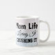 Mom Life - Living it - Loving it mug with a sparkling bokeh background.
