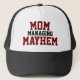 A strong, graphic mom hat featuring the phrase “Mom Managing Mayhem.” Designed for mothers who keep everything running, even when life gets chaotic. A fun yet empowering accessory for busy moms, parenting pros, and everyday superheroes. Ideal as a Mother’s Day gift or a practical daily wear hat.