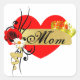 Say "I love you Mom" this mothers day with this square sticker. It features a big red heart with a red rose and a white daisy, beautiful black swirls and a crown. It says Mom on a scroll banner running across the middle. You can also change the background colour.