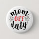 Fun ''Mom off duty'' button featuring typography script in black and red colour. Cool gift for all moms. Perfect for mothers day, birthdays etc.