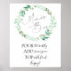Mom-osa Bar sign featuring a watercolor wreath of greenery and white flowers with the words "mom-isa bar" in a fun calligraphy script.