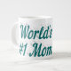 Mug with World's #1 Mom with your own photo and 3D blue green text. Mug available in several styles and colours.