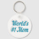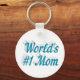 Key chain with World's #1 Mom in 3D sky blue text. Round and square key chains available in several sizes.