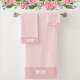 Mom text on light pink shades Bath Towel Set. Text can be personalized. Text only on one side.