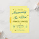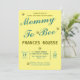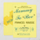 Mom To Bee Cute Baby Shower Invitation. With cute little bees, light blue and golden text with a yellow background. Yellow background and same text and little bee on the back of the card.