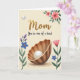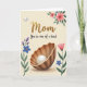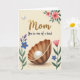 Designed with a soft cream background, this card features a glowing, cozy scene that feels like a gentle hug for Mom ❤️. Near the top center, the large word “Mom” appears in textured golden lettering, catching the light like a treasured keepsake. Just below it, the phrase “You’re one of a kind” is set in smaller flowing lettering in a darker tone, centered and easy to read. The lower half is anchored by an open seashell with earthy ridges, cradling a single round pearl that shines as if it’s been carefully protected. Around the edges, delicate flowers and leaves frame the space, adding a tender, affectionate touch like a bouquet given with a loving glance. A white bird glides near the upper left, wings spread in a calm arc, while soft pink blossoms and deep green foliage gather in the upper right 🌼. Slender stems with blue and deep purple blooms rise along the left side, and a pink bud lifts on the right, with tiny sparkles scattered near the base of the shell.