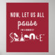 Célébrez la science et la nervosité avec une affiche rouge vif avec un jeu de mots Now, Let Us Pause for a Moment of Science.
