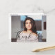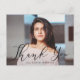 Stylish, elegant graduation thank you cards featuring a black modern calligraphy script font overlaying the graduate's favourite senior photo. Personalize the modern graduation thank you cards by adding the graduate's name, return address, and your custom message.