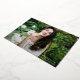Elegant graduation announcement featuring the graduate's horizontal photo with "Graduate" displayed in a gold foil script overlay. Personalize the gold foil graduation announcement with the graduate's name, school, and graduation year. The back of the announcement features a solid black background with space for additional photos and text.
