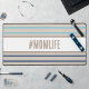 Desk Mat in turqouise blue, beige and white. Custom quote art hashtag design "#momlife" in beach colours. The perfect gift for your mom on her birthday or mother's day.