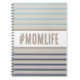 Notebook in turqouise blue, beige and white. Custom quote art hashtag design "#momlife" in beach colours. The perfect gift for your mom on her birthday or mother's day.