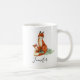 A personalized mug designed with a watercolor image of a mother and baby fox. The young fox is looking up at her mother with love and appreciation. Both sitting on some grass. Orange and tan colours.
