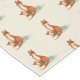 A patterned tablecloth designed with a watercolor image of a mother and baby fox. The young fox is looking up at her mother with love and appreciation. Both sitting on some grass. Orange and tan colours.