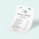 This Mommy Baby Elephant with Clouds "Mummy or Daddy" game is perfect for a jungle themed, gender neutral baby shower or sprinkle. The design features an adorable mother baby elephant duo in grey and teal with polka dot clouds and calligraphy. Personalise the game with the name of the mother-to-be and the date.