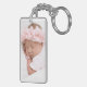 This mommy keychain features a modern typography text design with hearts. Personalize it with your photo on the back. This template works best with portrait format photographs.