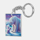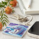 Pretty in blue and white, a polar bear with her cub is having a special moment on the ice. Acrylic Keychain.