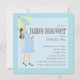 This design features a pregnant woman wearing a blue dress carrying a blue and green umbrella. Graphics ©JW Illustrations.