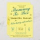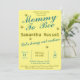Mommy To Bee Cute Virtual Baby Shower Invitation. With the covid pandemic still on, let's have an online Baby Shower. With cute little bees, light blue and golden text with a yellow background. Yellow background and same text and little bee on the back of the card.