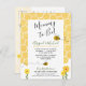 Theme Parties' cute bumble bee baby shower invitation postcard will get everyone buzzing before they even arrive with our little "Mommy to Bee" play on words! Featuring a yellow honeycomb pattern background and cute watercolor daisies, it's perfect for gender-neutral showers, baby boy showers, and baby girl showers -- and such a delightful shade of yellow! #BumbleBee #BabyShower #GenderNeutral #Invitations