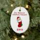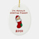 You can personalize the back and change the date on this cute baby's first Christmas keepsake ornament featuring a baby in a red Christmas stocking and kid style text that reads "I'm Mommy's Christmas Present!"