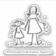 Mother and daughter hold hands. The woman's dress reads "mommy" and the little girl's dress reads "me". This parent and child family picture also comes in multiple ethnic family options including a simple line drawing. The words of "Mommy's Girl" are above the happy family. Personalize the family sticker decals with family names or a personal message for a special mother or mommy and daughter decal gifts! You can make custom family stickers for a special Mother's Day gift, new Mommy and/or new baby, Family Reunion or other customized family art gifts!