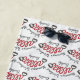 Beach towel features an original marker illustration of a red exercise resistance band, with MOMMY'S WORKOUT BUDDY in a fun font.