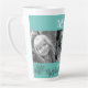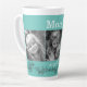 Mom's Angels 3 Photo Latte Mug. Sunflower Border. Turquoise background. Black and White applied to photos.