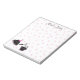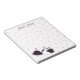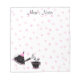 A wonderful notepad for anything from love notes to writing a grocery list. It has a white background with a pink swirls. A pink and black teapot and tea cup sit at the bottom. The tea pouring out spells mom. You customize the text at the top.