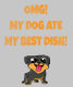 C'est une phrase drôle et cool avec un chien qui a mangé le plat :) Un must pour les amoureux des animaux.
