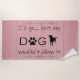 Le My Dog Would't Allow It Beach Towel comporte un texte qui dit : "J'irais...mais mon chien ne l'autorisait pas." avec un empreinte de patte et une silhouette de chien ornée contre un arrière - plan en bois rose. Autres cadeaux disponibles avec ce design aussi.