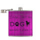 Un flacon parfait pour ceux qui préfèrent la compagnie des chiens et le confort de la maison! Cette conception de flacon comporte un texte qui dit "Je partirais...mais mon chien ne l'autorisait pas." avec un empreinte de patte et une silhouette de chien ornée contre un arrière - plan en bois violet. Autres cadeaux disponibles avec ce design aussi.