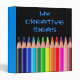 Des crayons colorés lumineux sont alignés à travers le fond de l'avant et du dos de ce classeur. Épine bleue, arrière - plan noir, et dans le bleu "mes idées créatives" à travers le dessus. Perfectionnez pour maintenir des croquis, poèmes, écritures, quelque chose que vous pouvez penser à.