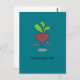 Express votre encouragement et votre excitation avec cette carte postale mignonne, punny, veggie. Il présente une betterave joyeuse sautant avec amour sur un arrière - plan bleu. Cette carte est parfaite pour exprimer l'amour et l'anticipation. Il peut être utilisé pour envoyer des félicitations pour une naissance ou un mariage. Vous pouvez également l'utiliser pour envoyer un être cher dans une aventure ou à l'express en prévision d'une date à venir.