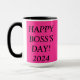 "Mon employé préféré m'a donné cette tasse" Café de jour du patron/Mug de thé. Célébrez la Journée des Patrons avec un cadeau réfléchi qui apportera un sourire chaque fois qu’ils l’utilisent! Ce charmant mug comporte le message joyeux "Joyeux Boss's Day 2024" d'un côté et le message humoristique "Mon employé préféré m'a donné cette tasse". Alors que l'arrière - plan rose vif peut être mieux adapté à un patron féminin, cette tasse peut être customisée, en changeant la couleur de l'arrière - plan pour mieux convenir à un patron plus masculin. Montrez votre appréciation et illuminez votre journée avec cette touche unique et personnelle !